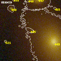 Object #445   x,y = (2654, 2357)   RA, Dec = (09:49:52.128, 17:07:12.72) = (147.46720, 17.12020)   BPZ = 0.403 [0.250--0.864]   type = 3.00 (Ell5_A_0)   chisq2 = 0.10   ODDS = 0.54   z_cluster = 0.383