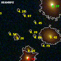 Object #490 x,y = (3158, 2487) RA, Dec = (09:49:50.016, 17:07:20.64) = (147.45840, 17.12240) BPZ = 0.198 [0.089--4.192] type = 7.20 (Scd_B10 - SB1_B10) chisq2 = 0.41 ODDS = 0.07 z_cluster = 0.383