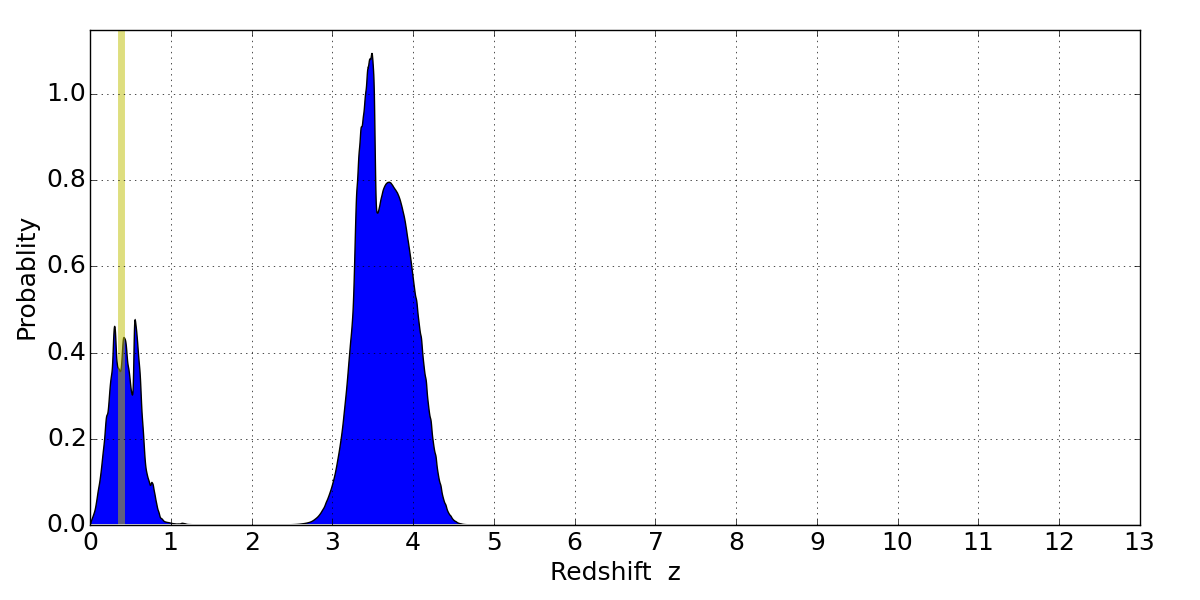 Best viewed in a wide browser window (1200 pixels or more). Download SED & P(z) plots to view larger versions.