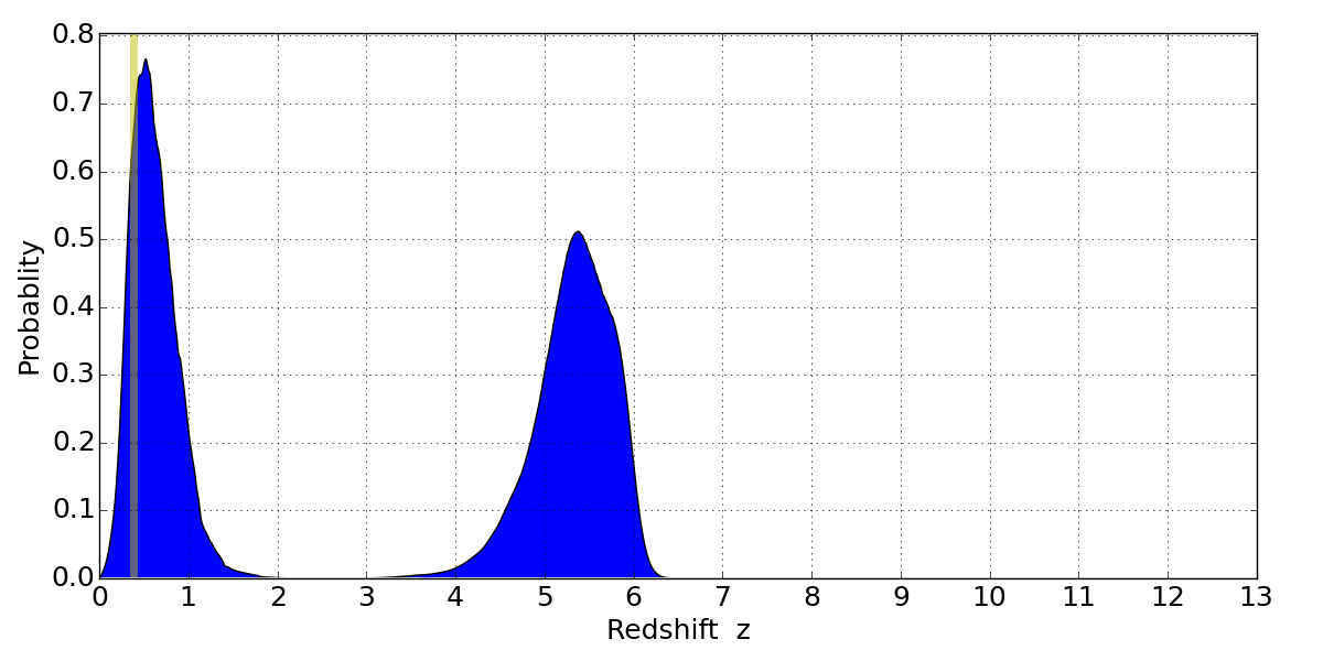 Best viewed in a wide browser window (1200 pixels or more). Download SED & P(z) plots to view larger versions.