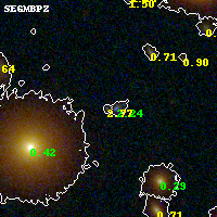 Object #670 x,y = (3483, 2077) RA, Dec = (09:49:48.672, 17:06:55.80) = (147.45280, 17.11550) BPZ = 2.774 [1.286--2.949] type = 9.30 (SB2_B10 - SB3_B10) chisq2 = 0.70 ODDS = 0.54 z_cluster = 0.383