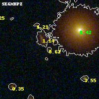 Object #723 x,y = (3350, 2002) RA, Dec = (09:49:49.224, 17:06:51.48) = (147.45510, 17.11430) BPZ = 0.622 [0.084--3.306] type = 10.10 (SB3_B10 - SB11_A_0_l) chisq2 = 0.38 ODDS = 0.29 z_cluster = 0.383