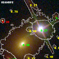 Object #746 x,y = (1894, 1832) RA, Dec = (09:49:55.320, 17:06:41.40) = (147.48050, 17.11150) BPZ = 0.299 [0.218--0.385] type = 7.50 (SB1_B10 - Scd_B10) chisq2 = 0.38 ODDS = 0.77 z_cluster = 0.383