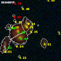 Object #816 x,y = (3526, 1752) RA, Dec = (09:49:48.480, 17:06:36.36) = (147.45200, 17.11010) BPZ = 0.349 [0.054--0.613] type = 7.20 (Scd_B10 - SB1_B10) chisq2 = 0.08 ODDS = 0.32 z_cluster = 0.383