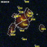 Object #820 x,y = (3493, 1729) RA, Dec = (09:49:48.624, 17:06:34.92) = (147.45260, 17.10970) BPZ = 0.433 [0.378--0.491] type = 2.00 (Ell6_A_0) chisq2 = 0.04 ODDS = 0.96 z_cluster = 0.383