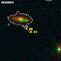 Object #824 x,y = (3944, 1785) RA, Dec = (09:49:46.728, 17:06:38.52) = (147.44470, 17.11070) BPZ = 2.030 [1.417--2.506] type = 9.30 (SB2_B10 - SB3_B10) chisq2 = 0.03 ODDS = 0.41 z_cluster = 0.383