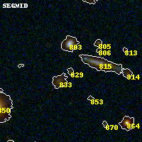 Object #829 x,y = (2356, 1777) RA, Dec = (09:49:53.376, 17:06:38.16) = (147.47240, 17.11060) BPZ = 3.913 [0.330--4.300] type = 9.00 (SB2_B10) chisq2 = 0.07 ODDS = 0.51 z_cluster = 0.383