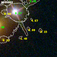 Object #830   x,y = (1979, 1775)   RA, Dec = (09:49:54.960, 17:06:37.80) = (147.47900, 17.11050)   BPZ = 0.877 [0.455--1.018]   type = 9.10 (SB2_B10 - SB3_B10)   chisq2 = 0.15   ODDS = 0.46   z_cluster = 0.383