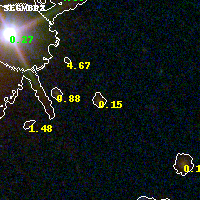 Object #832   x,y = (2021, 1769)   RA, Dec = (09:49:54.792, 17:06:37.44) = (147.47830, 17.11040)   BPZ = 0.155 [0.080--4.058]   type = 4.00 (Ell4_A_0)   chisq2 = 0.34   ODDS = 0.23   z_cluster = 0.383