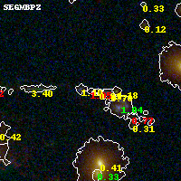 Object #973 x,y = (2934, 1424) RA, Dec = (09:49:50.976, 17:06:16.92) = (147.46240, 17.10470) BPZ = 1.054 [0.505--2.397] type = 10.40 (SB3_B10 - SB11_A_0_l) chisq2 = 1.22 ODDS = 0.39 z_cluster = 0.383