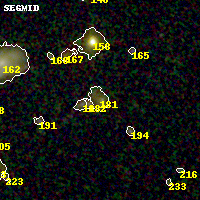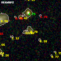 Black segments are analyzed here. Roll mouse over color images to view segments. Best viewed in a wide browser window (1200 pixels or more). Download SED & P(z) plots to view larger versions.