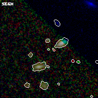 Black segments are analyzed here. Roll mouse over color images to view segments. Best viewed in a wide browser window (1200 pixels or more). Download SED & P(z) plots to view larger versions.