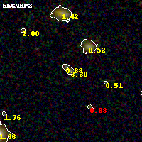 Black segments are analyzed here. Roll mouse over color images to view segments. Best viewed in a wide browser window (1200 pixels or more). Download SED & P(z) plots to view larger versions.