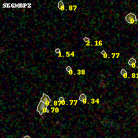 Black segments are analyzed here. Roll mouse over color images to view segments. Best viewed in a wide browser window (1200 pixels or more). Download SED & P(z) plots to view larger versions.