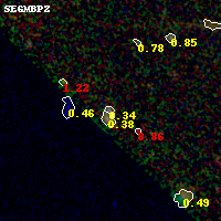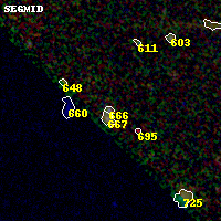 Black segments are analyzed here. Roll mouse over color images to view segments. Best viewed in a wide browser window (1200 pixels or more). Download SED & P(z) plots to view larger versions.