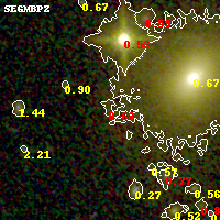 Black segments are analyzed here. Roll mouse over color images to view segments. Best viewed in a wide browser window (1200 pixels or more). Download SED & P(z) plots to view larger versions.