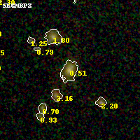 Black segments are analyzed here. Roll mouse over color images to view segments. Best viewed in a wide browser window (1200 pixels or more). Download SED & P(z) plots to view larger versions.
