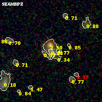 Black segments are analyzed here. Roll mouse over color images to view segments. Best viewed in a wide browser window (1200 pixels or more). Download SED & P(z) plots to view larger versions.