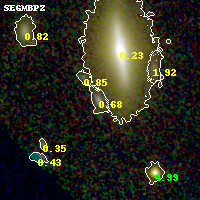 Black segments are analyzed here. Roll mouse over color images to view segments. Best viewed in a wide browser window (1200 pixels or more). Download SED & P(z) plots to view larger versions.