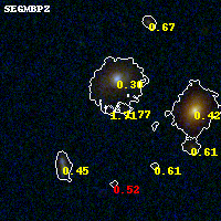 Black segments are analyzed here. Roll mouse over color images to view segments. Best viewed in a wide browser window (1200 pixels or more). Download SED & P(z) plots to view larger versions.