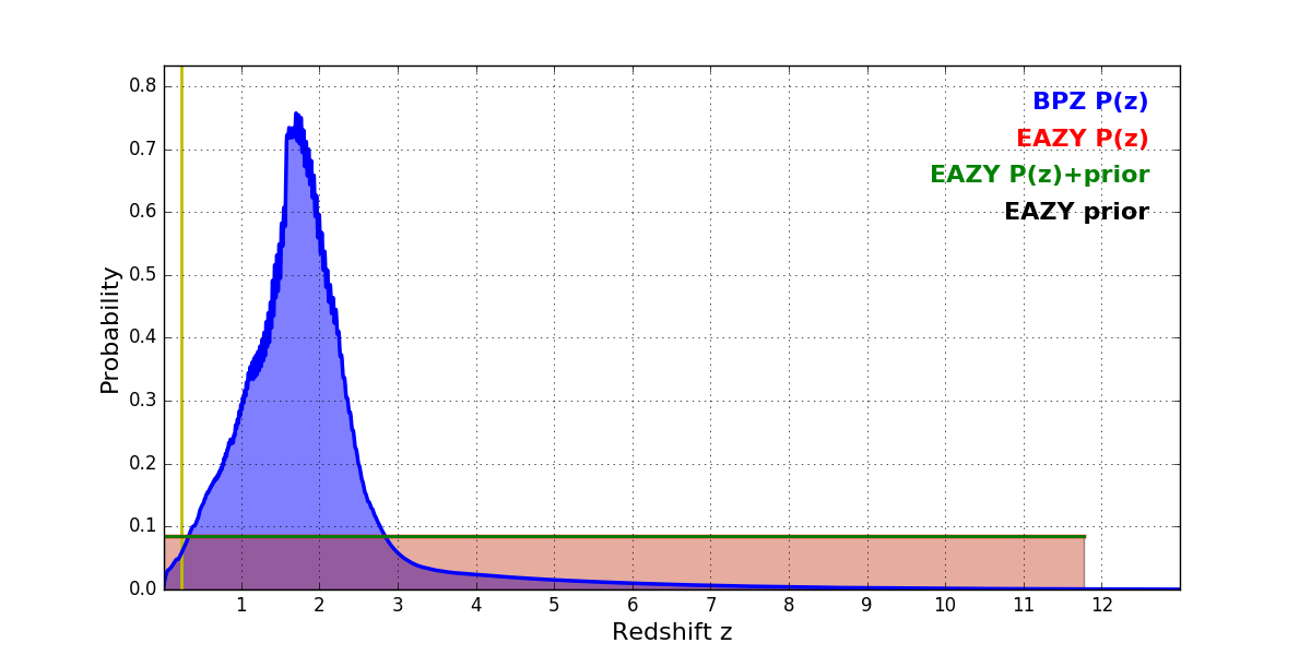 In P(z) plots: Yellow lines mark the cluster redshift z = 0.228,