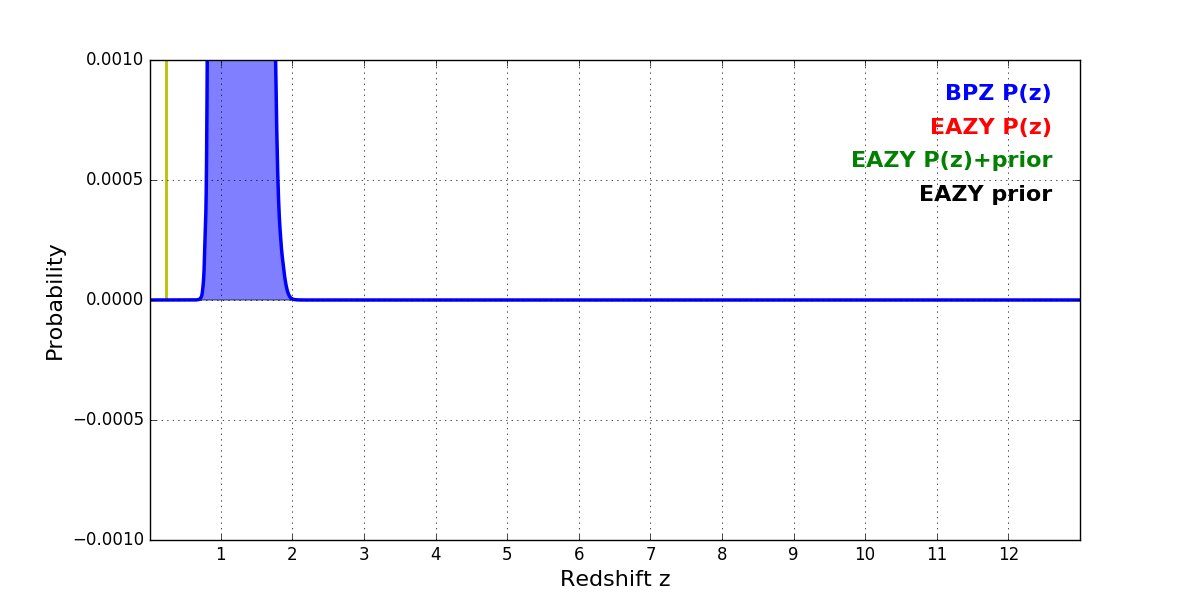 In P(z) plots: Yellow lines mark the cluster redshift z = 0.228,