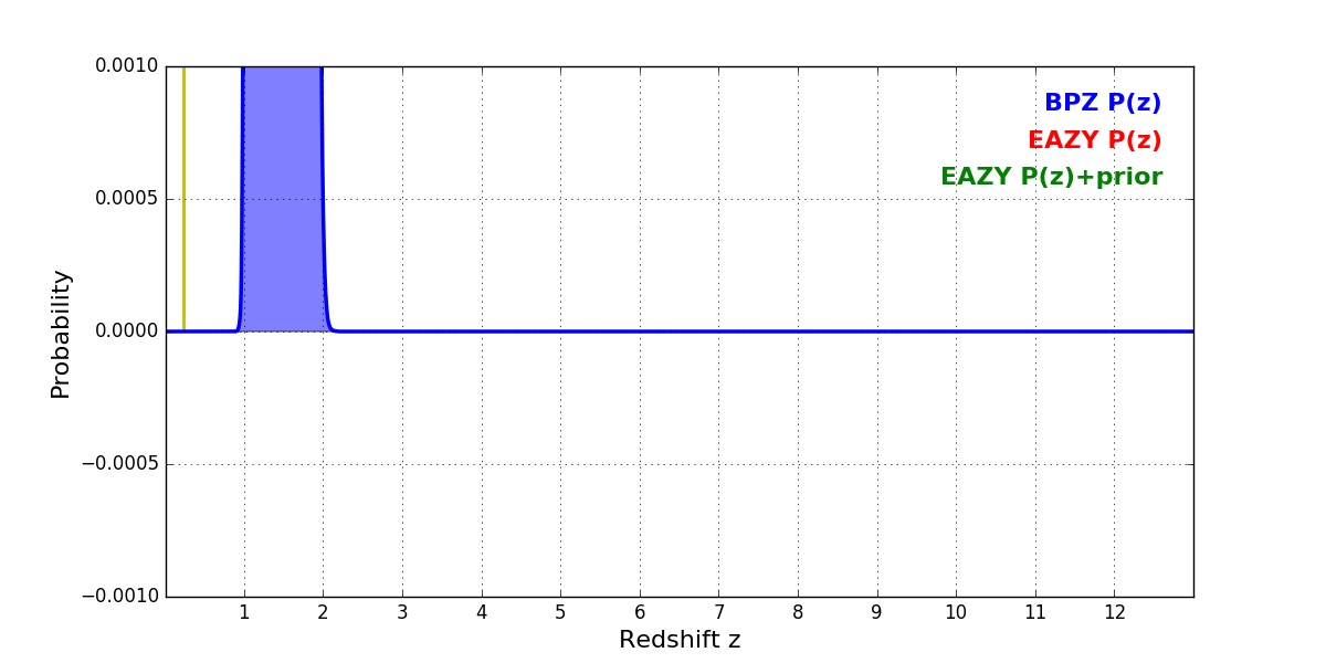 In P(z) plots: Yellow lines mark the cluster redshift z = 0.228,