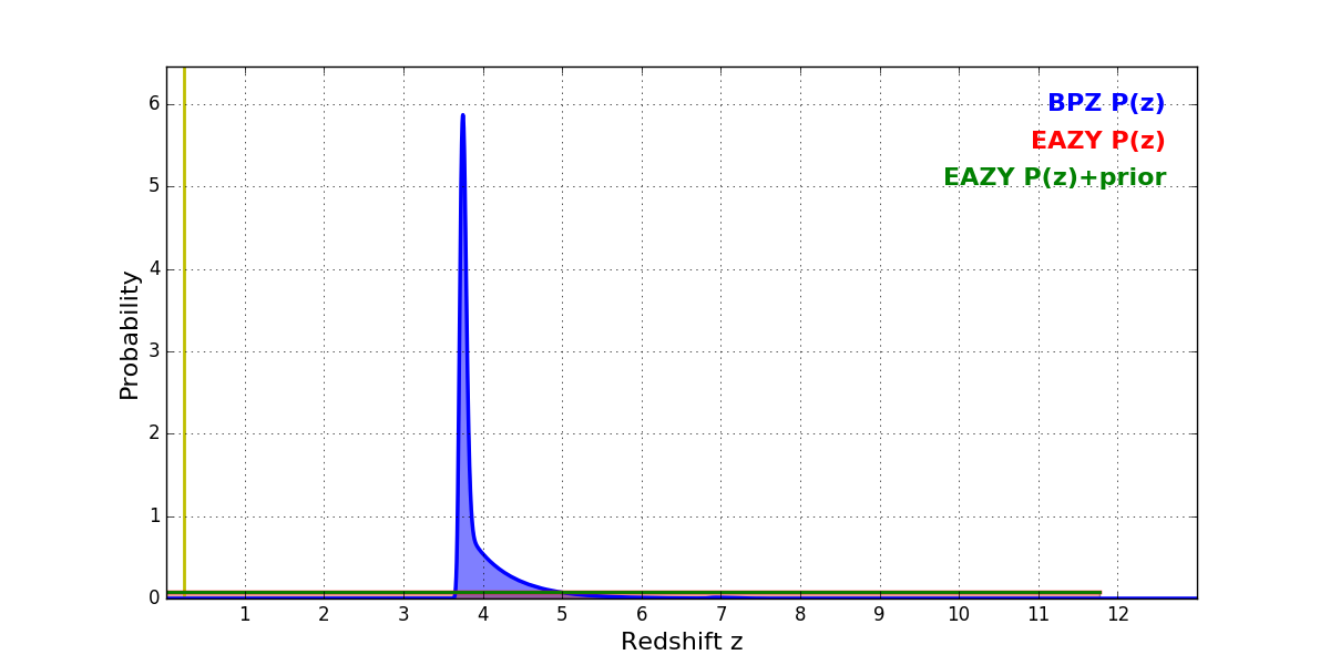In P(z) plots: Yellow lines mark the cluster redshift z = 0.228,