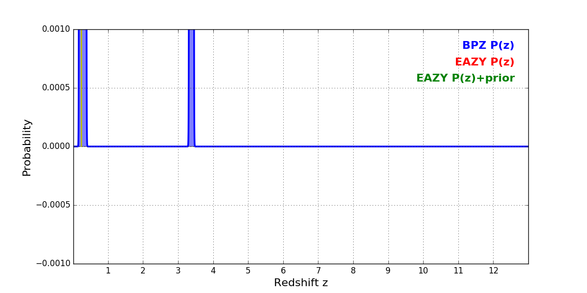 In P(z) plots: Yellow lines mark the cluster redshift z = 0.228,