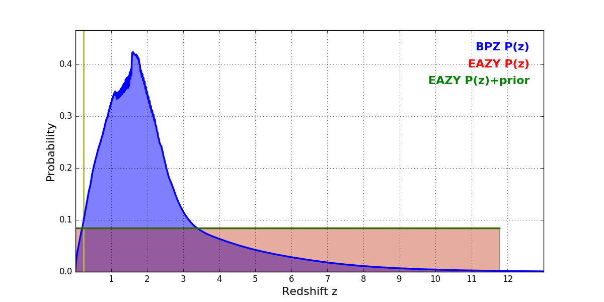 In P(z) plots: Yellow lines mark the cluster redshift z = 0.228,