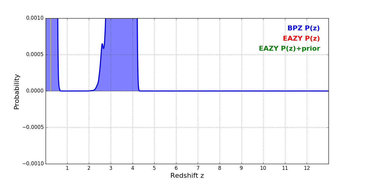 In P(z) plots: Yellow lines mark the cluster redshift z = 0.228,