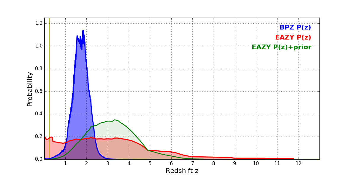In P(z) plots: Yellow lines mark the cluster redshift z = 0.228,