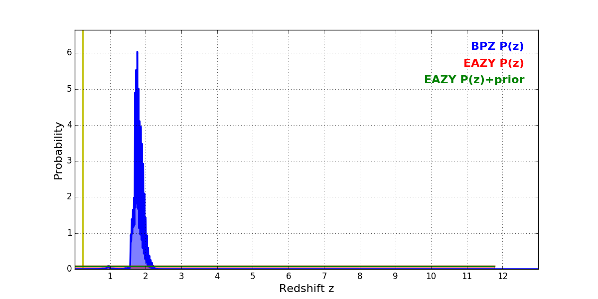 In P(z) plots: Yellow lines mark the cluster redshift z = 0.228,