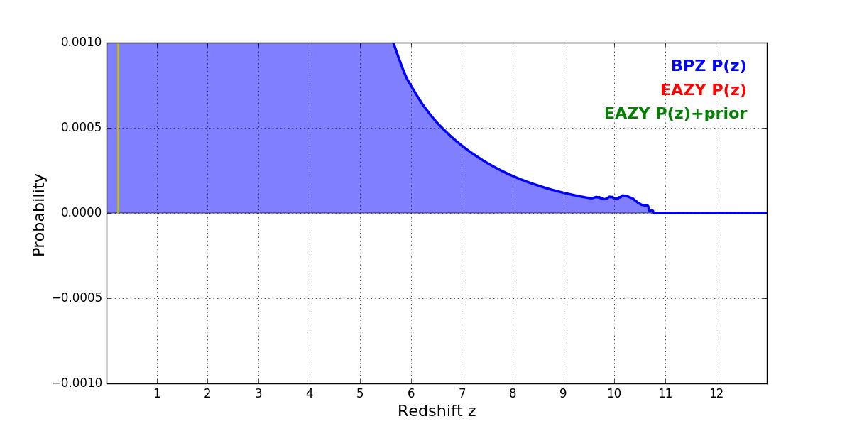 In P(z) plots: Yellow lines mark the cluster redshift z = 0.228,