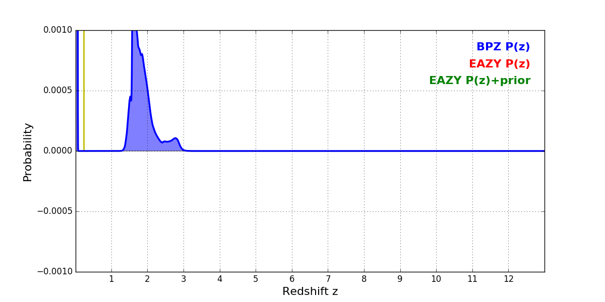 In P(z) plots: Yellow lines mark the cluster redshift z = 0.228,