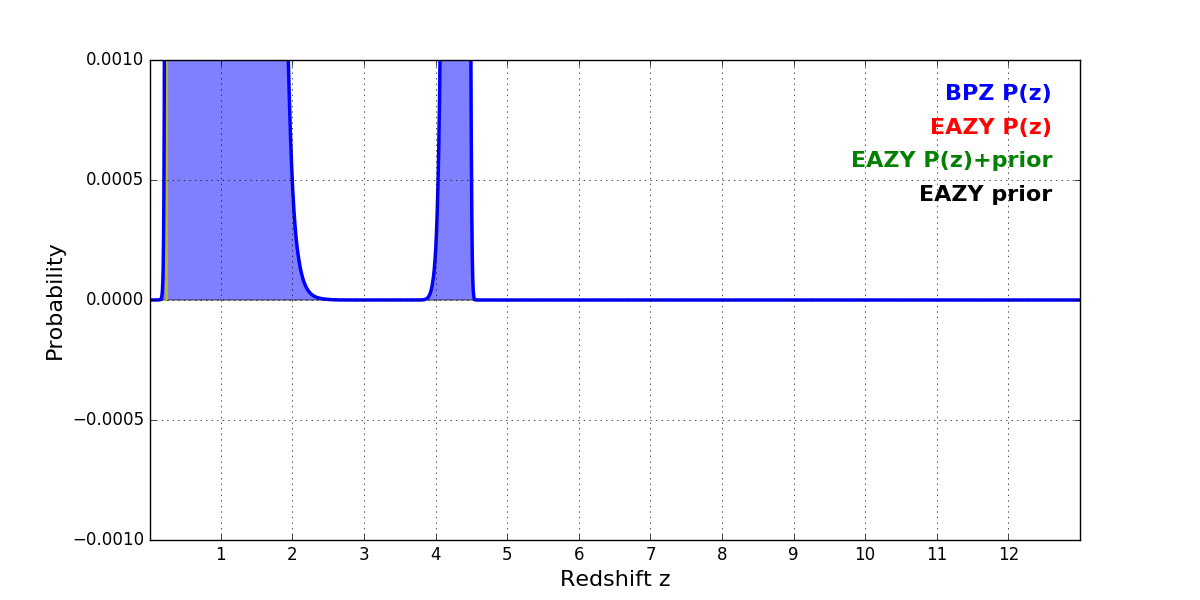 In P(z) plots: Yellow lines mark the cluster redshift z = 0.228,