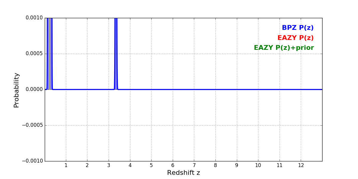In P(z) plots: Yellow lines mark the cluster redshift z = 0.228,