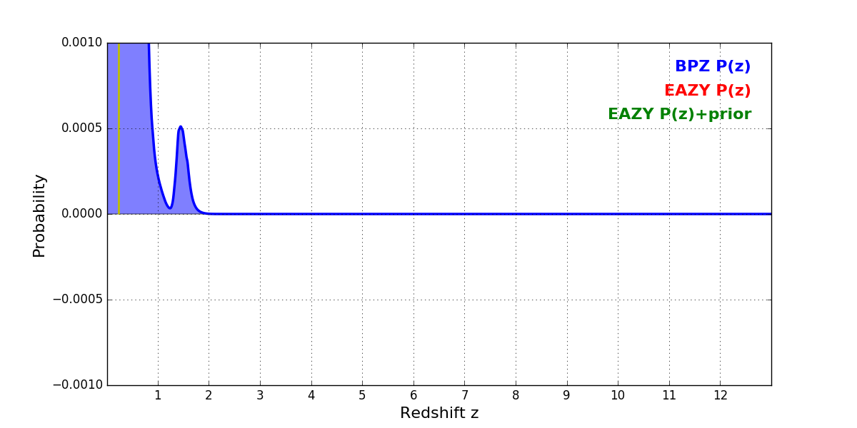 In P(z) plots: Yellow lines mark the cluster redshift z = 0.228,
