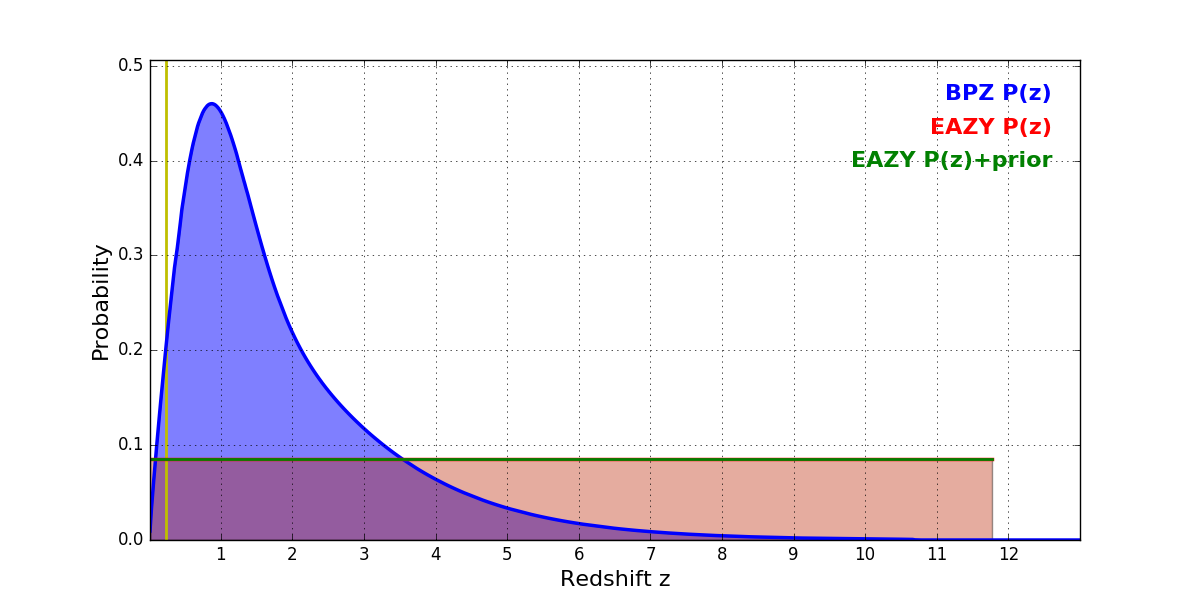 In P(z) plots: Yellow lines mark the cluster redshift z = 0.228,