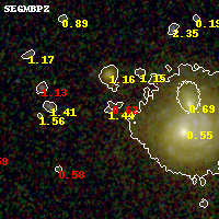 Black segments are analyzed here. Roll mouse over color images to view segments. Best viewed in a wide browser window (1200 pixels or more). Download SED & P(z) plots to view larger versions.