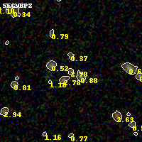 Black segments are analyzed here. Roll mouse over color images to view segments. Best viewed in a wide browser window (1200 pixels or more). Download SED & P(z) plots to view larger versions.