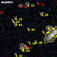 Black segments are analyzed here. Roll mouse over color images to view segments. Best viewed in a wide browser window (1200 pixels or more). Download SED & P(z) plots to view larger versions.