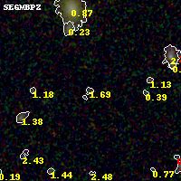 Object #1237   x,y = (2249, 2743)   RA, Dec = (02:54:54.936, -58:53:30.12) = (43.72890, -58.89170)   BPZ = 1.691 [0.251--3.554]   type = 10.40 (SB3_B10 - SB11_A_0_l)   stellarity = 0.43   chisq2 = 0.06   ODDS = 0.14   z_cluster = 0.438