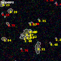 Object #1305   x,y = (1978, 2707)   RA, Dec = (02:54:57.024, -58:53:32.28) = (43.73760, -58.89230)   BPZ = 0.198 [0.084--3.502]   type = 10.00 (SB3_B10)   stellarity = 0.36   chisq2 = 0.49   ODDS = 0.07   z_cluster = 0.438