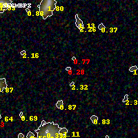 Object #2005   x,y = (1924, 2253)   RA, Dec = (02:54:57.456, -58:53:59.64) = (43.73940, -58.89990)   BPZ = 0.282 [0.130--3.389]   type = 10.70 (SB11_A_0_l - SB3_B10)   stellarity = 0.37   chisq2 = 1.20   ODDS = 0.07   z_cluster = 0.438