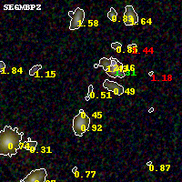 Object #2190   x,y = (1369, 2126)   RA, Dec = (02:55:01.752, -58:54:07.20) = (43.75730, -58.90200)   BPZ = 0.508 [0.177--4.052]   type = 10.10 (SB3_B10 - SB11_A_0_l)   stellarity = 0.35   chisq2 = 0.10   ODDS = 0.06   z_cluster = 0.438