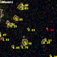 Object #2221   x,y = (2863, 2107)   RA, Dec = (02:54:50.184, -58:54:08.28) = (43.70910, -58.90230)   BPZ = 2.226 [0.276--4.091]   type = 9.50 (SB3_B10 - SB2_B10)   stellarity = 0.35   chisq2 = 0.76   ODDS = 0.10   z_cluster = 0.438