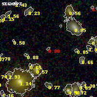Object #2818   x,y = (1158, 1710)   RA, Dec = (02:55:03.384, -58:54:32.04) = (43.76410, -58.90890)   BPZ = 0.879 [0.238--4.891]   type = 9.00 (SB2_B10)   stellarity = 0.37   chisq2 = 1.30   ODDS = 0.09   z_cluster = 0.438