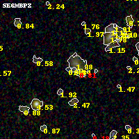 Black segments are analyzed here. Roll mouse over color images to view segments. Best viewed in a wide browser window (1200 pixels or more). Download SED & P(z) plots to view larger versions.
