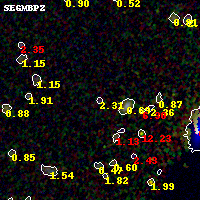 Black segments are analyzed here. Roll mouse over color images to view segments. Best viewed in a wide browser window (1200 pixels or more). Download SED & P(z) plots to view larger versions.